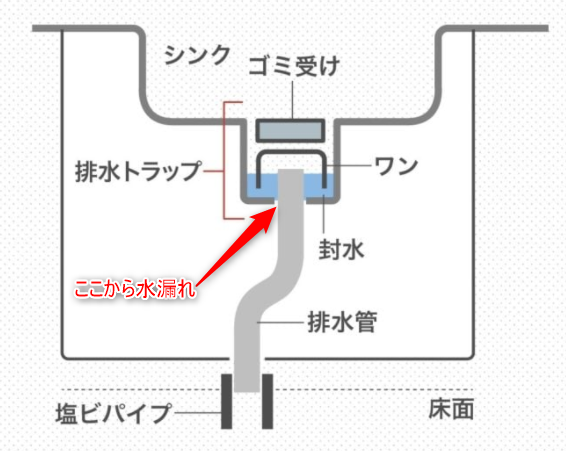 排水トラップ自体が劣化していたり割れていたりしているのかなーと思いつつ